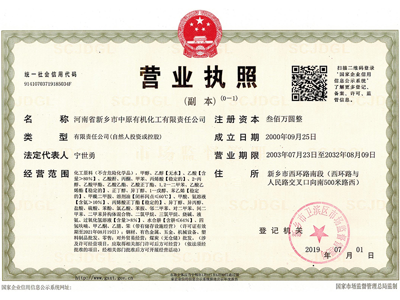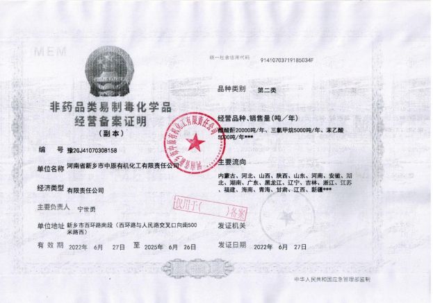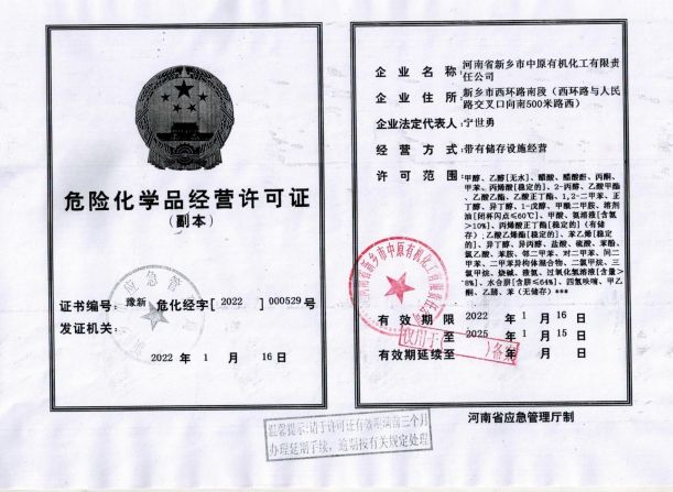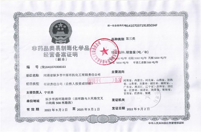 河南省新鄉(xiāng)市中原有機化工有限責任公司 多年 經(jīng)營經(jīng)驗